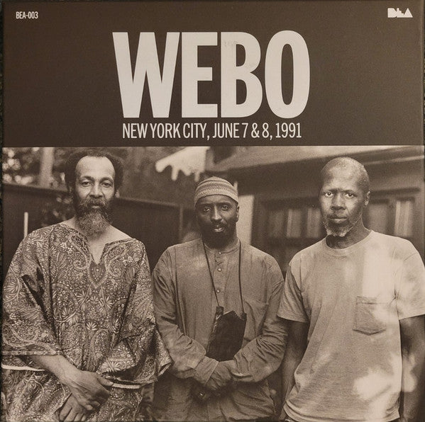 "A legendary concert by one of the great unrecorded bands in free jazz history is here at last. WEBO, the third installment in the Black Editions Archive series of previously unreleased recordings from Milford Graves' private tape library, roars into the station June 21, 2024. For the first time, Charles Gayle, Milford Graves, & William Parker -- three lions of the Black American jazz avantgarde -- are finally heard together on record, presented here across three audiophile-quality LPs for two brutalizingly joyous hours of real ju-ju & musical mastery. The trio of Charles Gayle, Milford Graves, & William Parker gave only seven public performances between 1985 and 2013, and released no recordings. Their June 1991 two-night stand at the short-lived Lower East Side venue Webo, long referenced as a signal event in New York free jazz's 1990s resurgence, has been a topic of discussion among close followers of the music for decades. In the uncompromising grassroots spirit of the 1970s New York Musicians Organization and loft jazz movements from which they had emerged, the band produced and promoted the WEBO concerts themselves. Photography and audio recording were not allowed at the concerts, and this official recording, commissioned by the artists, was never released -- until now. So vivid was the lore surrounding WEBO that it topped the list of recordings sought by Black Editions Archive from Graves' private collection. The tapes maximally substantiate eyewitness accounts describing extra-sensory levels of communication within the band, and the extraordinary clarity and impact of their performance. From William Parker's liner notes: 'Imagine a village or choir of drummers, horn players and strings. You can hear the bass and drums churning with a call and response, a melodic-rhythmic propulsion. In reality there is only one drummer, one bass, and one saxophone.' Age 52 at the time of these concerts, Charles Gayle had only recently made his first recordings. To all but the most immediate insiders he was still more myth than reality. Milford Graves, two months out from his 50th birthday, was about halfway into his body of recorded work and had sanctioned just one appearance on a commercially released recording in the last 14 years (Pieces of Time by an all-drummer quartet with Kenny Clarke, Andrew Cyrille, and Famoudou Don Moye). William Parker, the young man of the group at age 39, was a mere fifty entries into his discography, now 500+ entries and counting. All three musicians were at least a quarter century into passionately developing a personal and collective music rooted in the cultural values and radical aesthetics of the 1960s and '70s Black American avant-garde. 30+ years after the WEBO concerts, Black Editions Archive is honored to make these historical recordings available to the public. The three LPs are presented in a heavy black, pigment-stamped box with mounted cover painting along with liner notes by William Parker, commentary from Alan Licht (witness to night one of the WEBO concerts), a reproduction of the original concert flyer, and a set of 6"x9" printed photos from the 2021 WEBO reunion outside MoMA PS1, Queens, NY. Cover Painting by Jeff Schlanger/musicWitness, made June 8, 1991, at Webo during the band's performance. Vinyl pressed at RTI, lacquers cut by Kevin Gray at Cohearent Audio." --Michael Ehlers, 2024