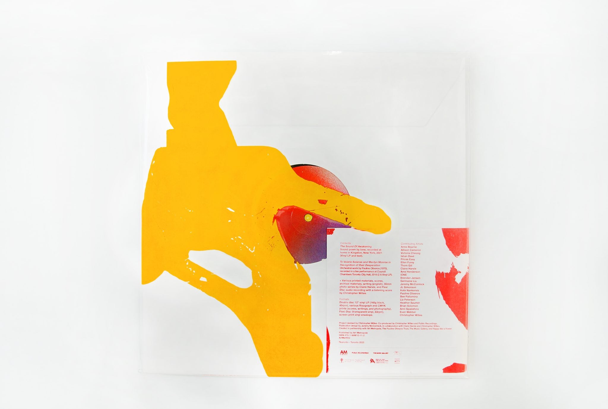 Resonance Gathering is a double LP and book that documents a large-scale performance project on the music of composer Pauline Oliveros (1932-2016) that occurred in Canada between 2017-2019. The project gathered nineteen interdisciplinary performers (mostly non-musicians) to interpret Oliveros’s score To Valerie Solanas and Marilyn Monroe in Recognition of Their Desperation (1970)—a work for sound and light that was written in response to the anxiety and political unrest of 1968 in America. Organized by multidisciplinary artist Christopher Willes and the collective Public Recordings, the ensemble included artists from dance, theatre, music, and visual arts, all performing together as musicians in a series of open rehearsals at various community spaces in Tkaronto—Toronto.