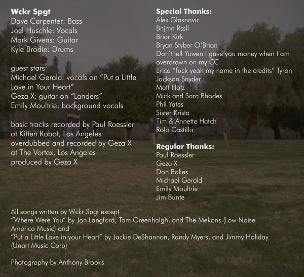 Produced and engineered by the wildly talented LA legend Geza X, these songs explore territory both familiarly challenging and challengingly familiar - "The Charles Sheen" takes its place in the "Charles Mansion" pantheon while "Aranya, The Problem-Faced Spider", a 3-part medley in less than 3 minutes, opens new vistas for exploration.